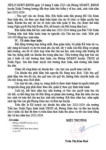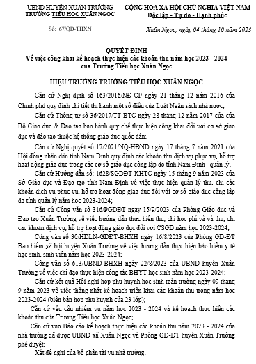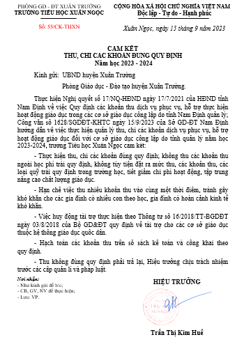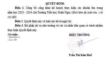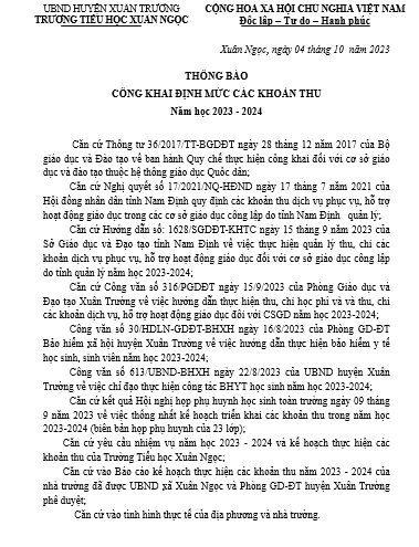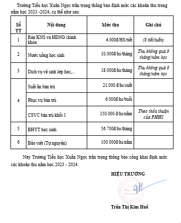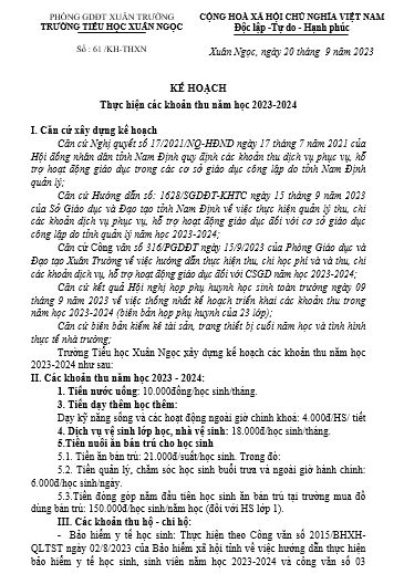 THỰC HIỆN CÔNG KHAI CÁC KHOẢN THU THEO QUY ĐỊNH NĂM HỌC 2023-2024.
