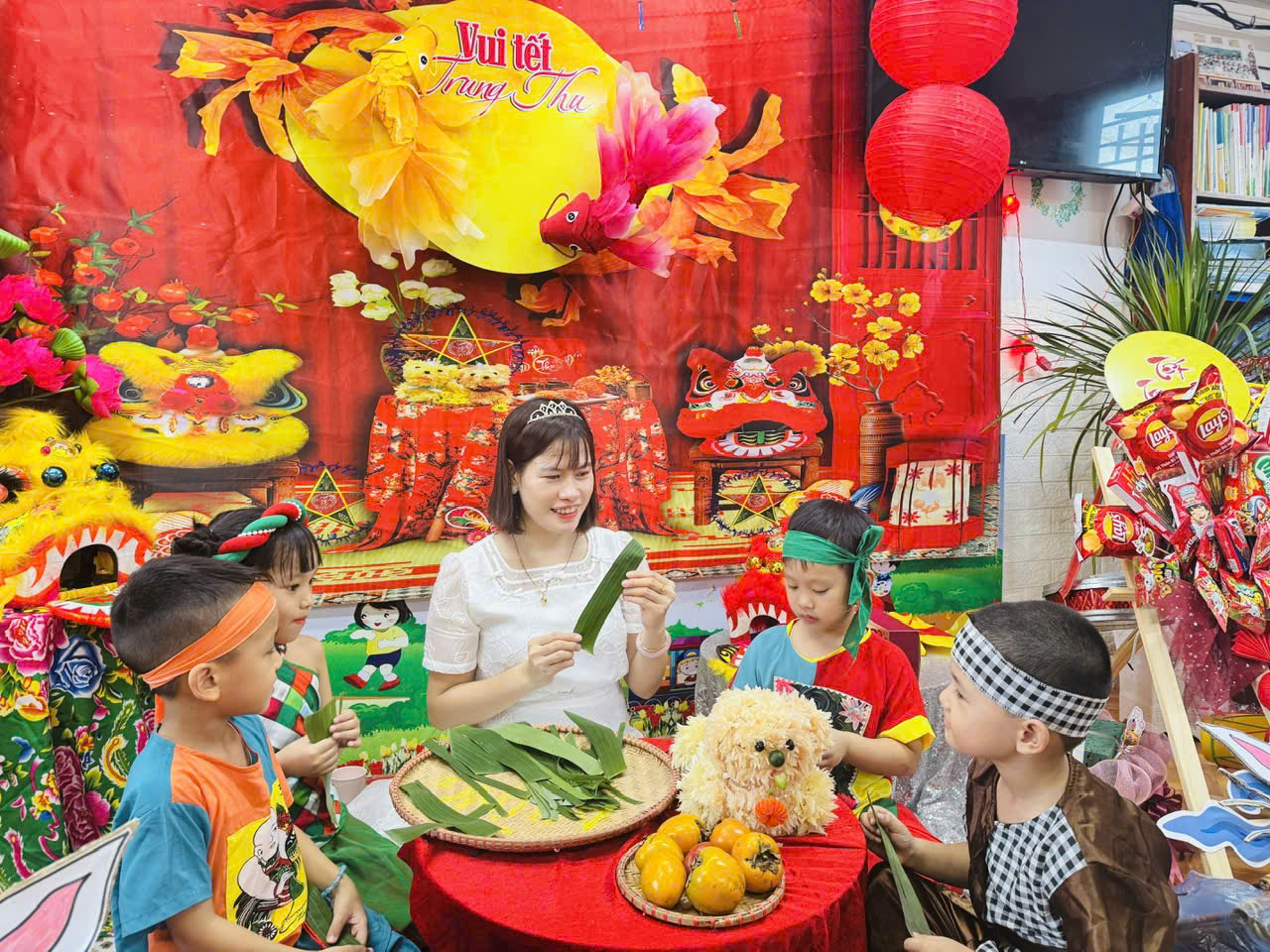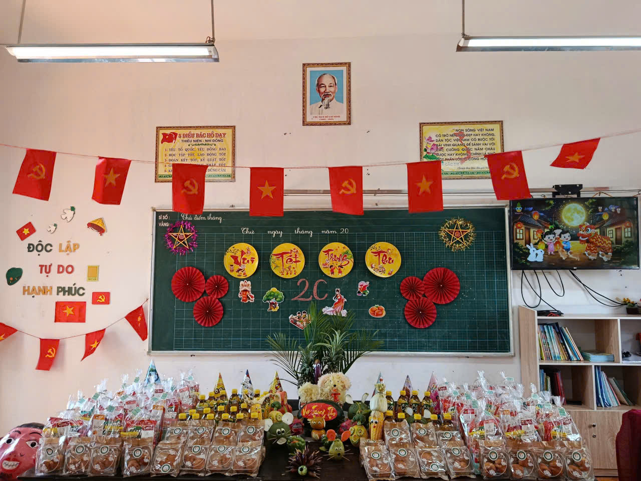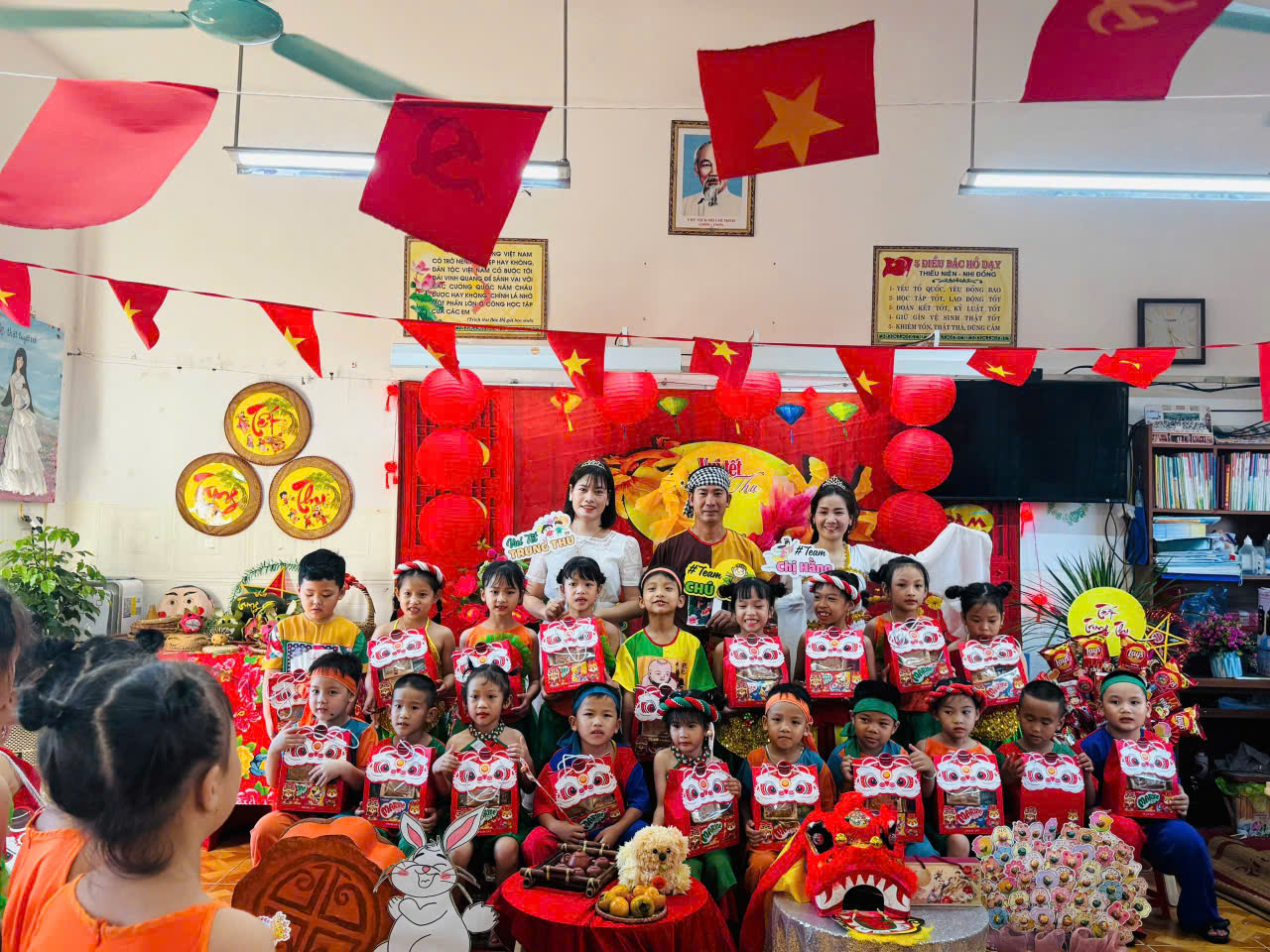 Mỗi lớp học là một không gian với sắc màu rất riêng, không trùng lặp nhưng tất cả đều tươi vui và đầy ắp yêu thương. Các bạn học sinh được tham gia bày mâm ngũ quả, làm đèn lồng, vẽ tranh, múa hát, rước đèn, trò chơi dân gian, thi đố vui, phá cỗ,…. và được nhận những phần quà thật ngọt ngào. Niềm vui ánh lên trên nụ cười, lấp lánh trong đôi mắt hồn nhiên của các em chính điều mà thầy cô và cha mẹ luôn mong chờ.